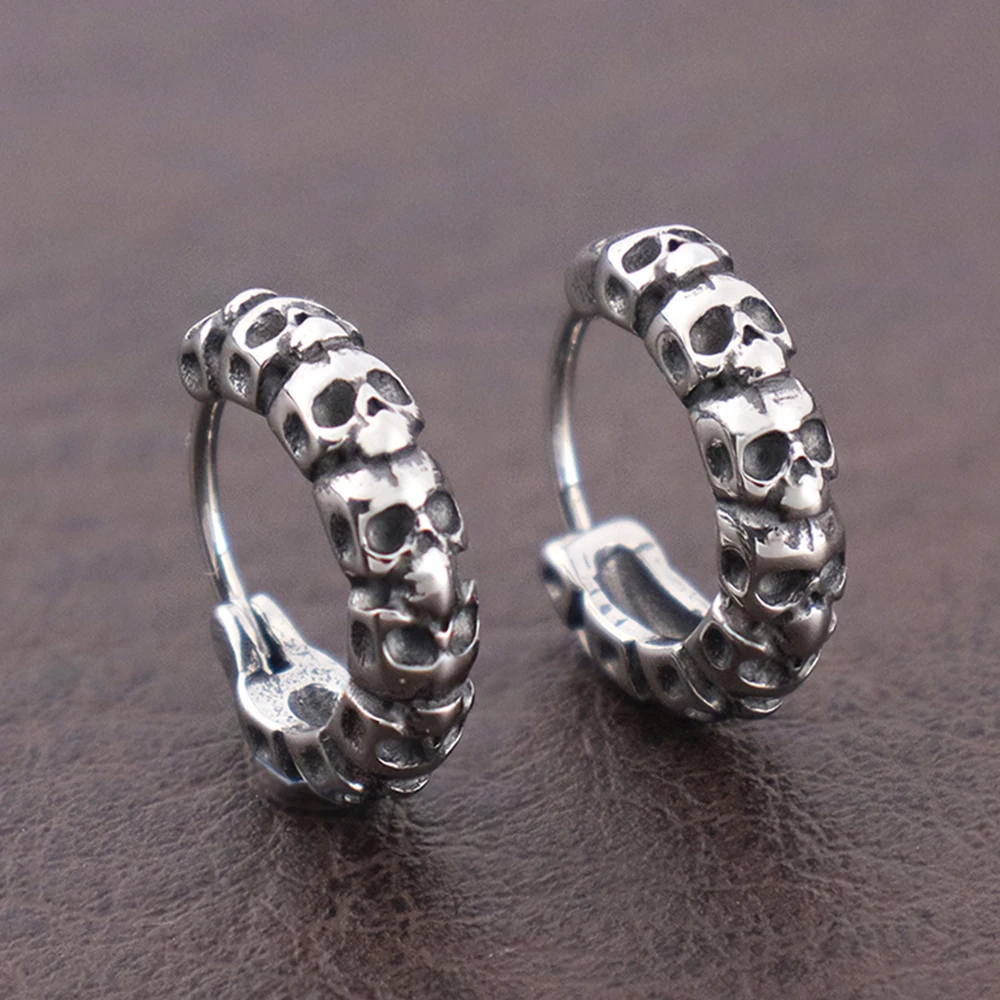 Name: Fashion Simple Skull Hoop Earrings for Women Stainless Steel Creative Skeleton Huggie Earring Gothic Male Pop Jewelry Wholesale