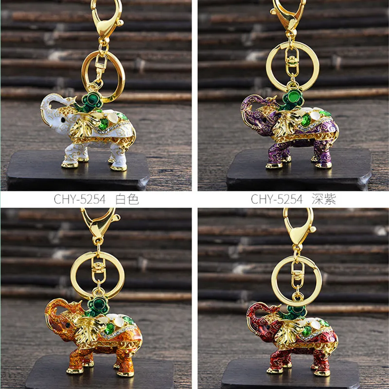 Fashion Cute Crystal White Elephant Key Chain Women Bag Keyring Wedding Trinket Creative Animal Keychain Girl Party Gift