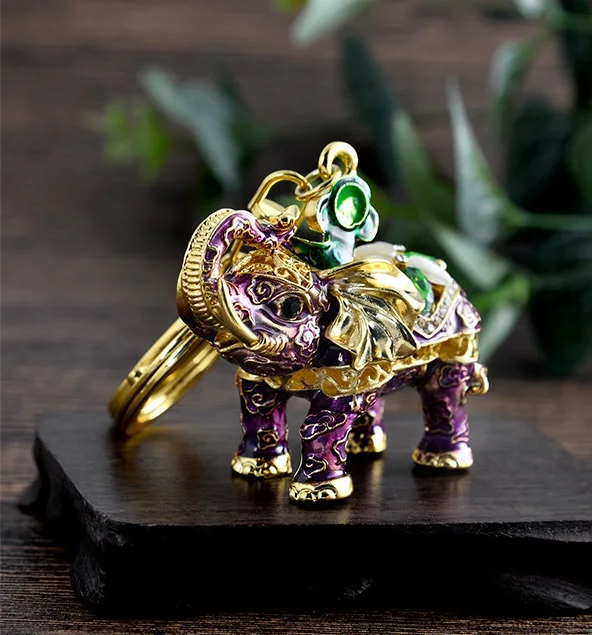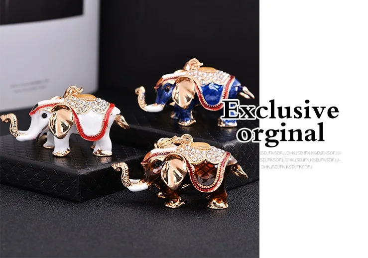 Fashion Woman Crystal White Elephant Key Chain Bag Keyring Wedding Trinket Creative Keychain Girl Party Gift K132