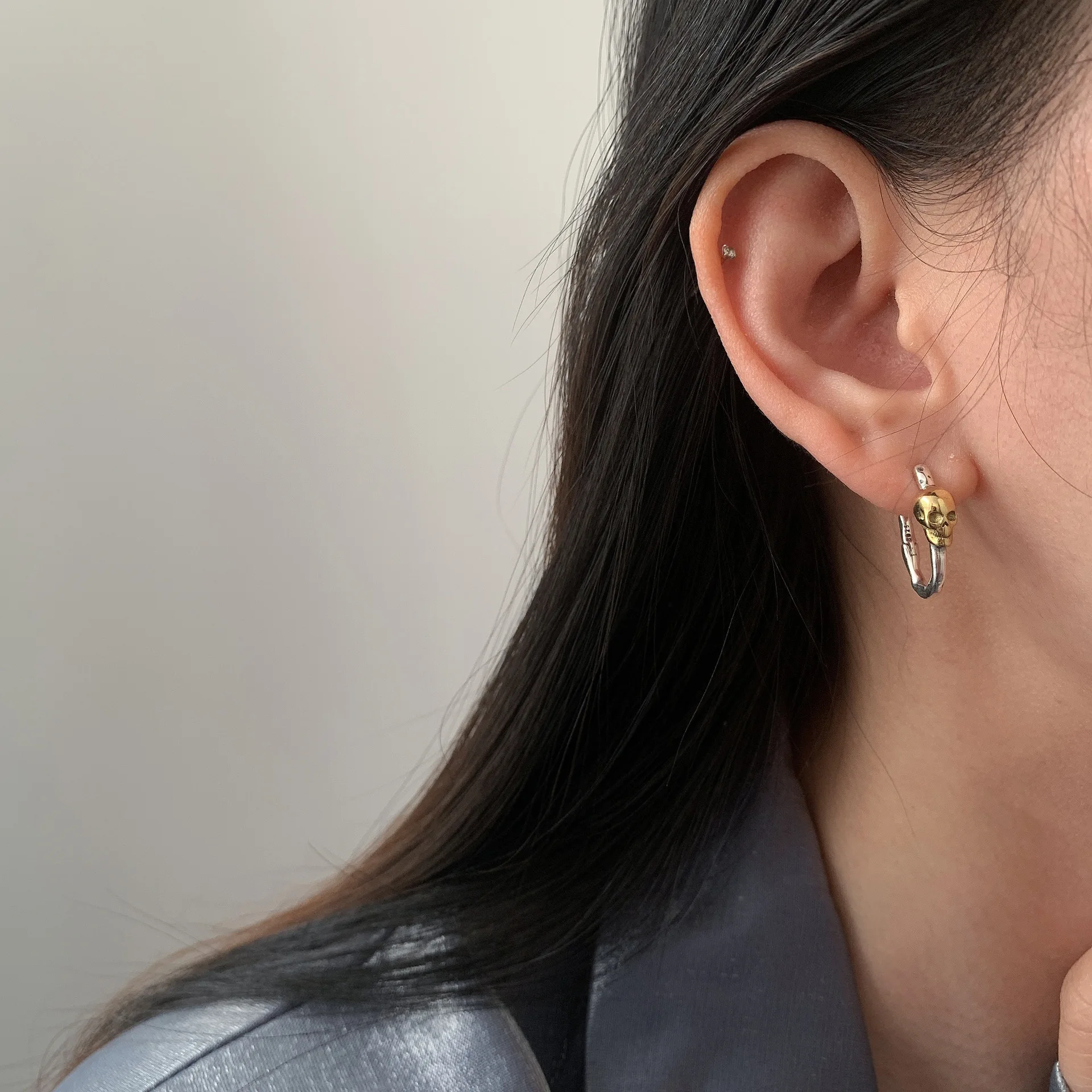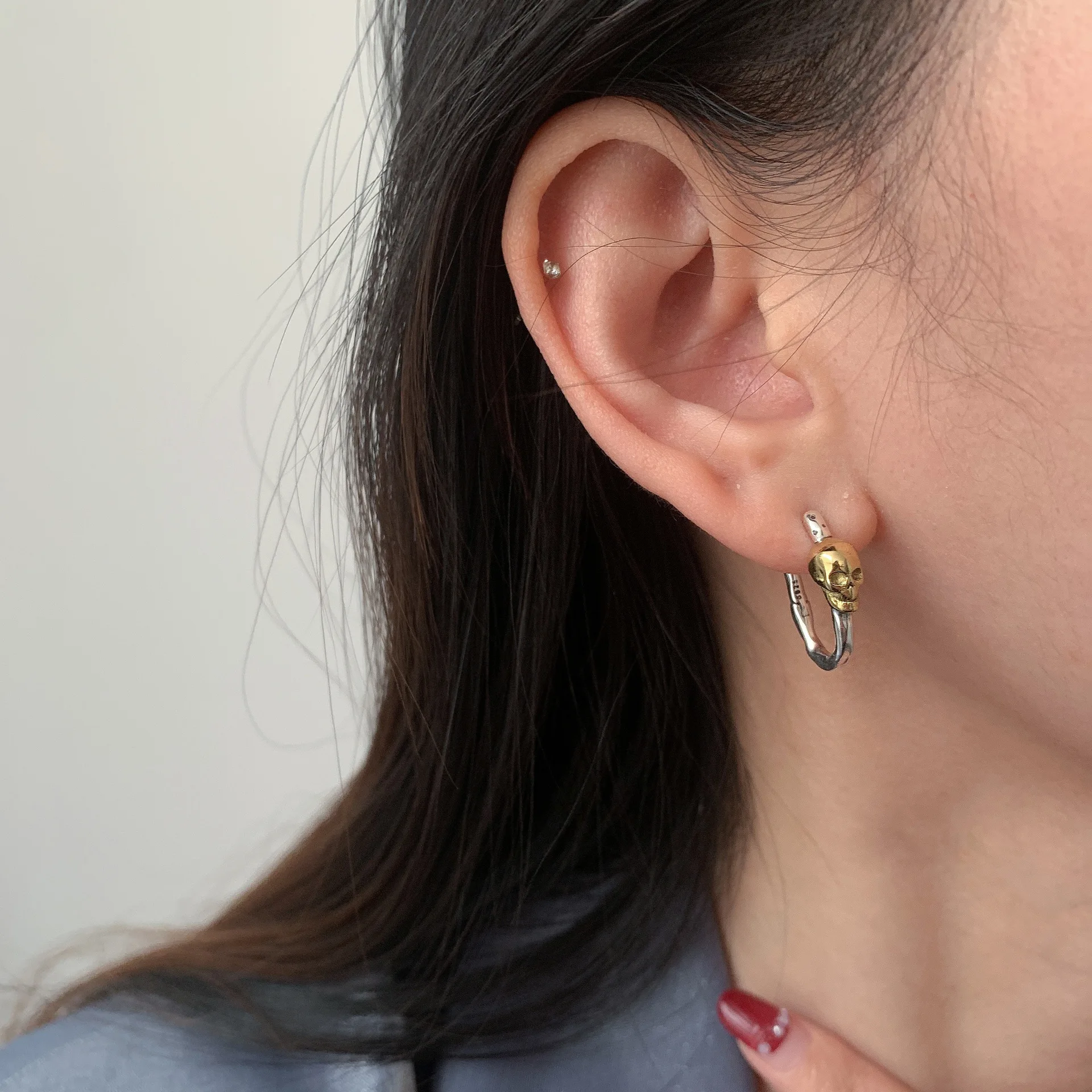 VENFTILLE Silver Gold Color Skull Hoop Earrings for Women Girl Punk Hiphop Jewelry Dropship Wholesale