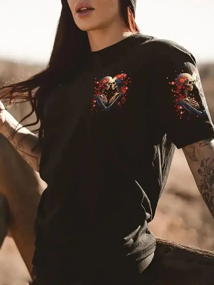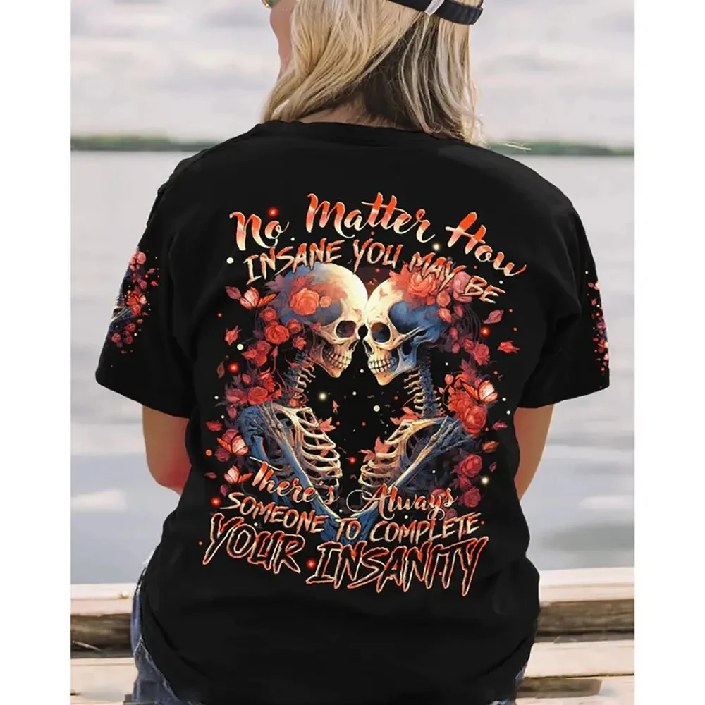 Women's 3d skull print T-shirt casual loose creative horror short-sleeved large size streetwear Y2K fashion personality street