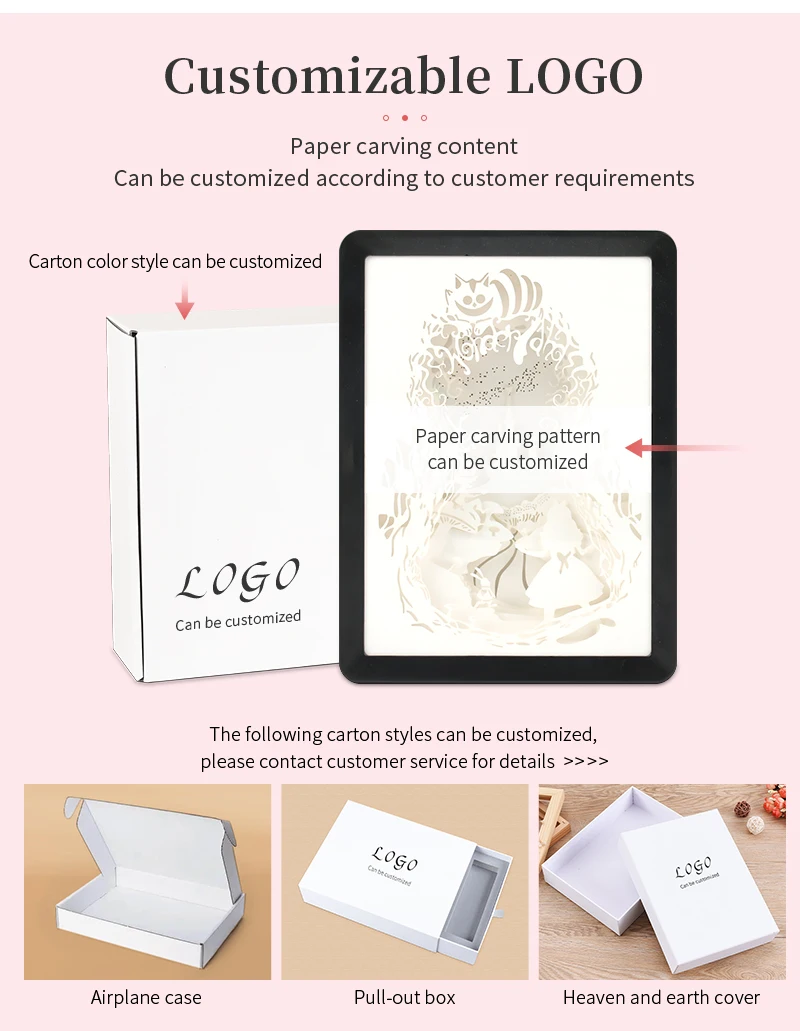 Light Box Elephant Paper Cut Light Box Shadow Box Frame Nightlight Led Room Light Usb Desk Lamp Room Decoration Kids Gifts